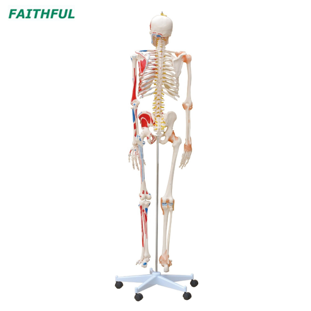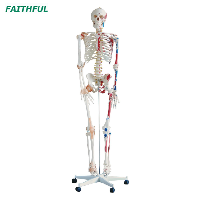 Основываясь на XC-101, эта модель окрашена, чтобы показать мышцы и связки. Левая сторона скелета показывает точки происхождения (красный) и точки вставки (синий) мышц.