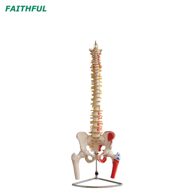 XC-126A позвоночный колонна с тазом и головками бедра и окрашенными мышцами:
