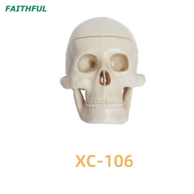 Эта модель показывает основную структуру различных костей черепа. Кальварий может быть удален, а нижняя челюсть висела, чтобы увидеть костные структуры рта.