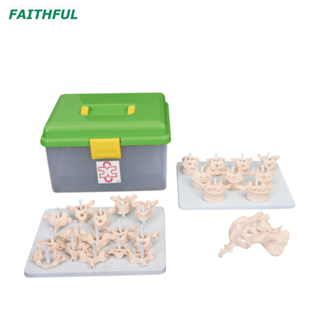 Эта модель состоит из 7 шейных позвонков, 12 грудных позвонков, 5 поясничных позвонков и 1 хвостовых позвонков, упакованных в пластиковую коробку.