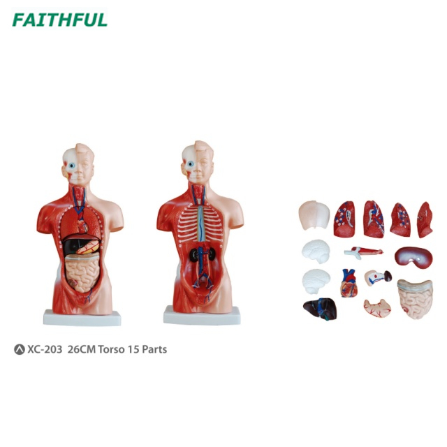 Этот самый популярный образовательный торс имеет 15 частей, в том числе туловище, мозг (2 части), Cut Calvarium, сердце, легкие (4 части), желудок, диафрагму, печень, сердце, трахеи и пищевод и аорта, поджелудочная железа и селезенка.