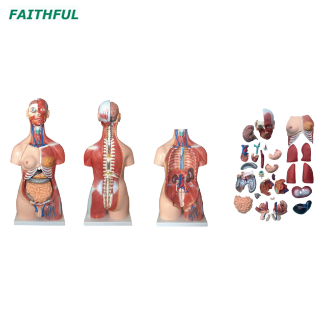 Этот унисекс торс, включая 30 частей: туловище, грудь, голова, глазное яблоко, мозг (1 часть), спинной нерв (1 часть), легкое (4