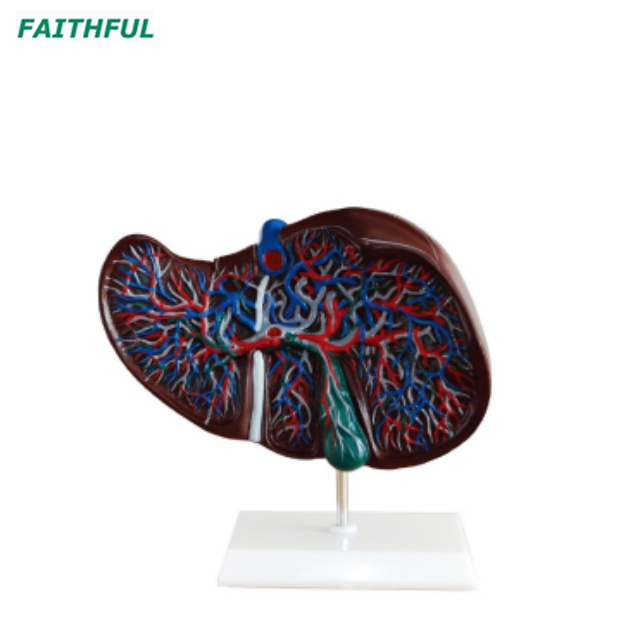 Эта модель показывает основные анатомические структуры печени. Сеть сосудов в открытой печени, отображаемая в различных расстояниях в режиме IVER: сосуды HIUS, внежпеченочные и внутрипеченочные желчные протоки. На стенде.