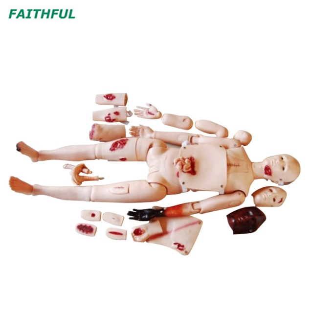 раненый. Усовершенствованный симулятор травм состоит из 22 модулей. Он может быть прикреплен к различным частям травмы на модели ухода, чтобы имитировать различные физические травмы, включая ожоги на лице 1,2,3 градуса, рваные раны, ушибки, выступающие тонкот Перелом конечности тела и другие травмы.